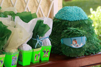 As you can see from the picture, by the time I got to the favour boxes I was totally and absolutely exhausted and could not face another great creative task, so I simply made some popcorn boxes, added the some washi tape to the top, some Wild Kratts to the front, glued tissue paper to the bottom, wrapped the little gifts in it and tied it with ribbon or hemp.
